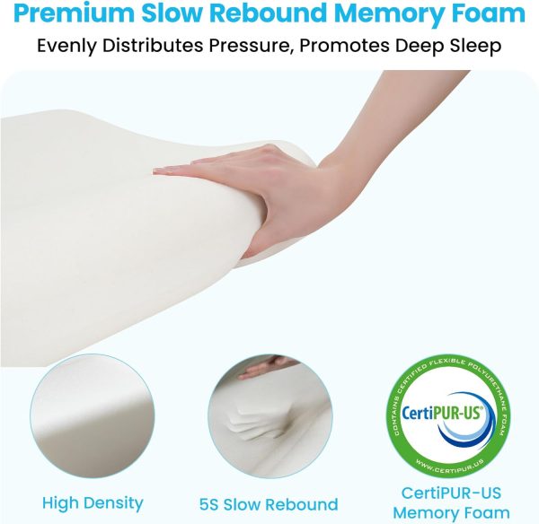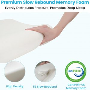 【Premium Slow Rebound Memory Foam】- Our cervical pillow features premium CertiPUR-US certified slow rebound memory foam. Its high-density, one-piece molding ensures sufficient support and optimal comfort, allowing you to sleep soundly throughout the night.