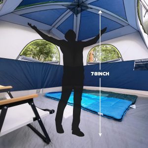 ✅【Roomy 6 People Family Tent】Spacious design offers enough room for 6 people family, with a size 10′ x 9′ x 78″(H) (90 sq ft),2 air mattresses or 6 sleeping bags are well fit in the tent,78inch center height is enough for you to stand up changing.