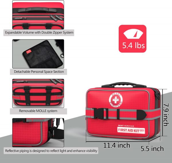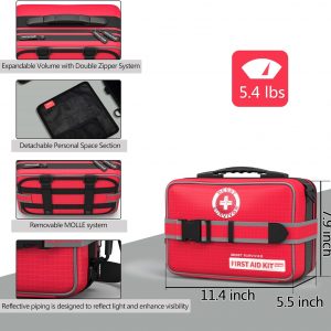 ✅【Expandable Volume and Personal Space】Our Comprehensive First Aid Kit with double zipper system can increasing the height by 2.1”, easily to expanded volume at any time. And detachable personal space allows you to DIY according you need.