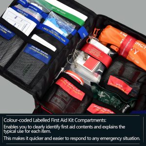 ✅ 【Labelled, Compartments, Well Organized】The trauma kit is super well-organized. Every item has a labeled slot that also provides the intended use for that item. First Aid booklet can explains the instructions for each item, and tells you the steps to resolve situations you might encounter. It will save you time in an emergency.