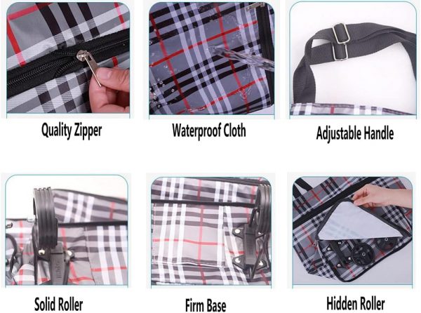 【Usages】A wonderful outdoor or indoor essential daily bag. It can be used as a collapsible shopping hand bag for carrying and also a reusable shopping cart for supermarket or daily shopping conveniently. Hanging over the shoulders or dragging heavy articles walking! Large capacity grocery bag holding lots of stuff including heavy things.Perfect for your belongings.