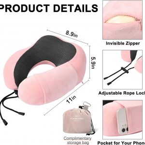 Hump Travel Neck Pillow: Made of high-quality memory foam with 5-second rebound technology for comfort and durability. Ergonomic hump design can better wrap your neck, free your chin, prevent your head from tilting forward and relieve neck pain while traveling. Pockets on the side of the pillow can store cards, keys cell phones, and other items, beautiful and practical.