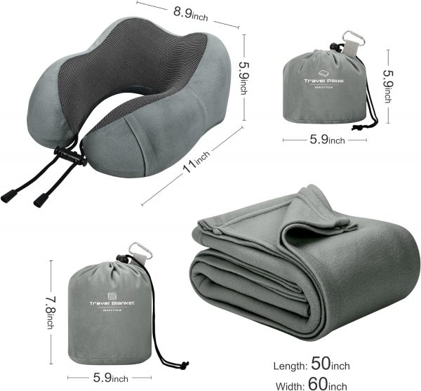 Note: This neck pillow and blanket set use vacuum compression. If the travel neck pillow does not expand immediately, please wait 1-2 days for the expansion to return to its original shape. If for any reason you are not satisfied, please feel free to contact us. We will do our best to provide you with satisfactory service.