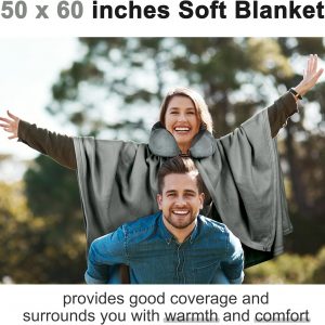 Portable Lightweight Travel Blanket: Made of double-sided short pile fabric, soft and cozy, lightweight and warm, durable and usable in all seasons, no pilling, and machine washable; Large size of 50 x 60 inches provides good coverage and surrounds you with warmth and comfort.