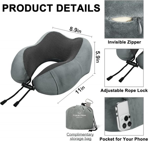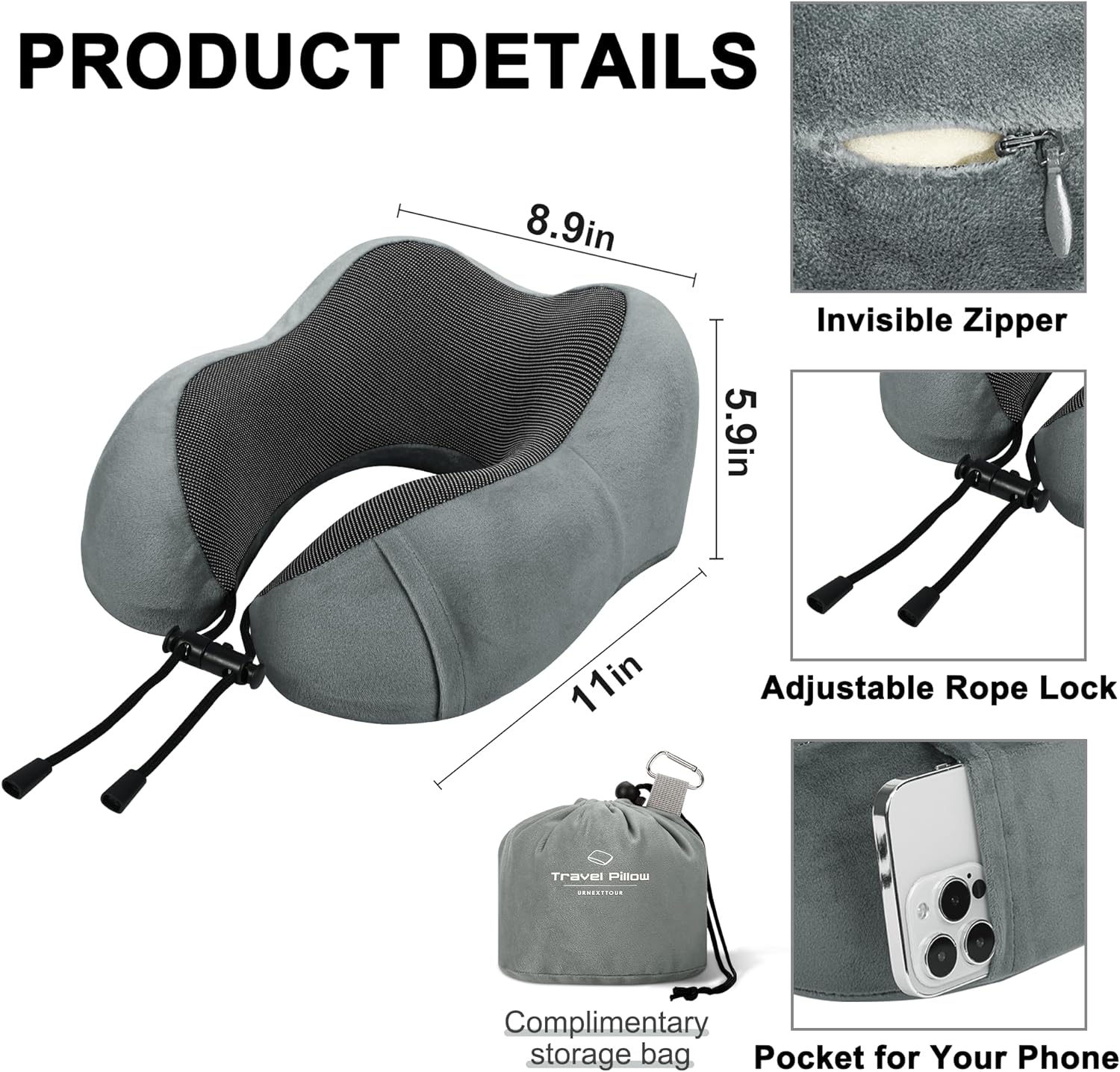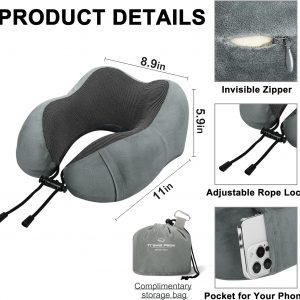 Hump Travel Neck Pillow: Made of high-quality memory foam with 5-second rebound technology for comfort and durability. Ergonomic hump design can better wrap your neck, free your chin, prevent your head from tilting forward and relieve neck pain while traveling. Pockets on the side of the pillow can store cards, keys cell phones, and other items, beautiful and practical.