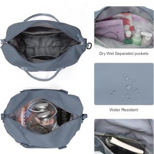 Dry Wet Separated Tote Gym Bag: High-density waterproof wet pocket in the main compartment, which can help you to separate dry items and wet items, if you have wet clothes or a towel, you can put it in this crossbody bag.