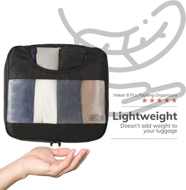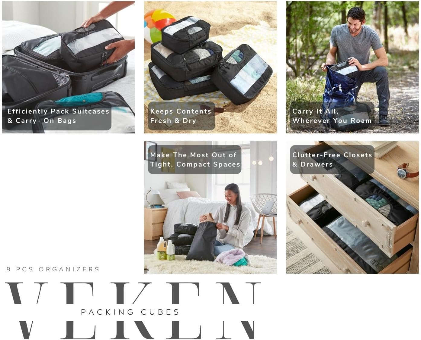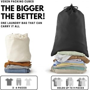 Veken packing cubes are store up to 3 times more laundry than common laundry bag.