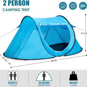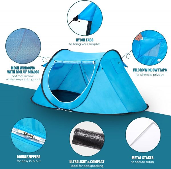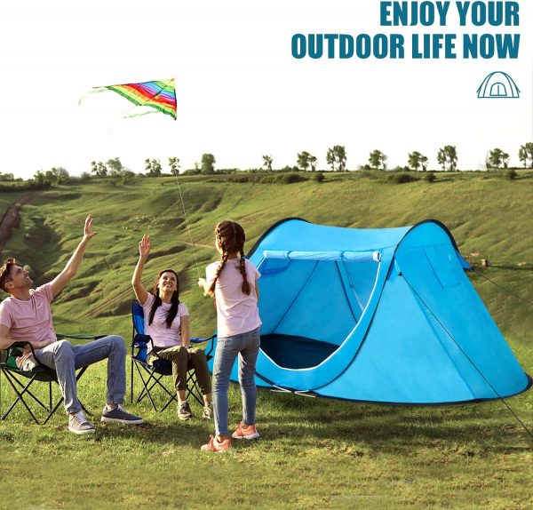 💪【EASY TO SET UP】 Instant pop-up tent that sets up in 3 seconds, comes with pre-assembled poles and retracts quickly.