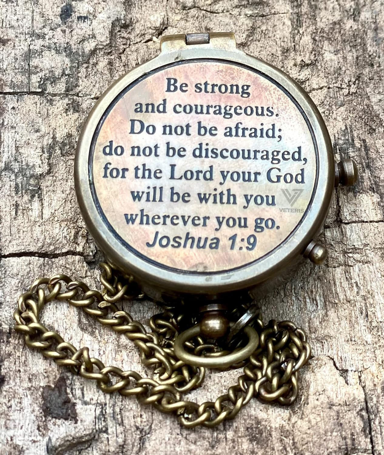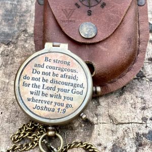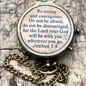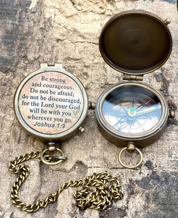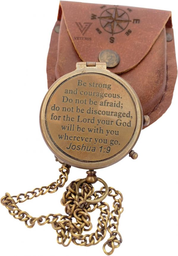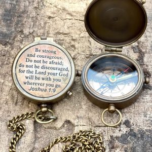 Gifts for Boys & Girls / Men & Women – Engraved Brass Compass engraved “Be Strong & Courageous” Joshua 1:9 God Quote, & Famous Invictus Motivational poem for Hard times, success Pocket compasses are perfect gifts of directions.