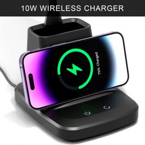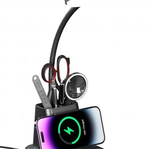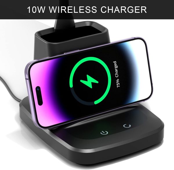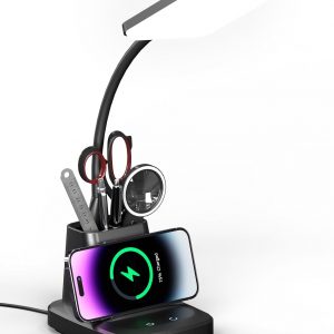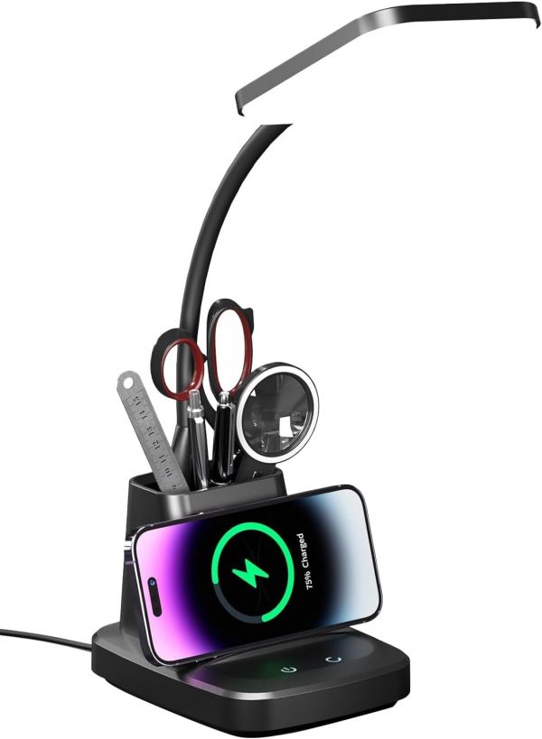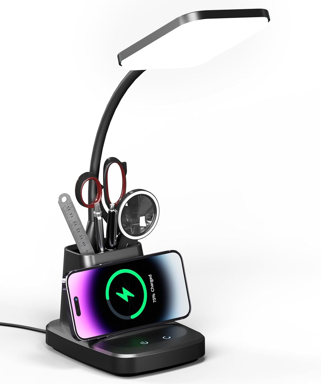 Vicsoon Desk Lamp with Wireless Charger, LED Desk Lamps for Home Office, 800 Lumens, Small Desk Lamp with Pen Holder, Flexible Arm, 3 Modes, Dimming, Touch Lamp for College Dorm Room