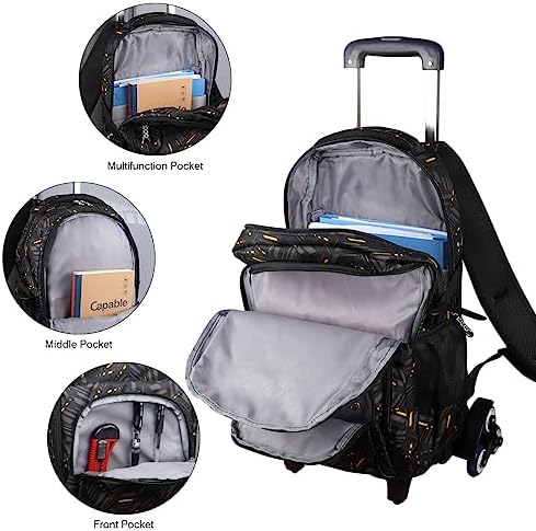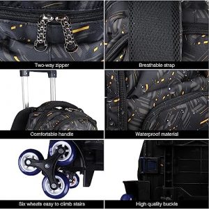 VILINKOU Rolling Backpack School Bag High-Capacity Backpack for Girl and Boy Rolling Trolley Bags Six Wheels Climbing Stairs (Yellow Box)
