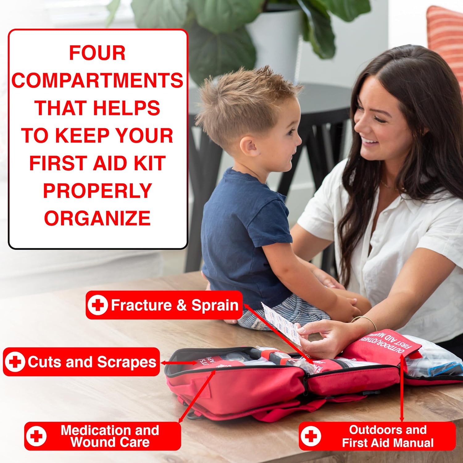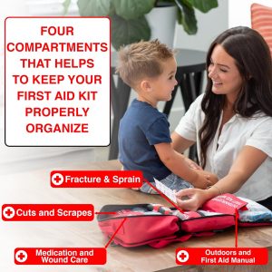 Organized for Instant Action: Our first aid kit box is intelligently organized into four clearly labeled sections, streamlining quick and easy access. Coupled with a step-by-step First Aid Manual, this design promotes efficient retrieval of accessories, empowering users to confidently navigate crises without inducing panic during emergencies.