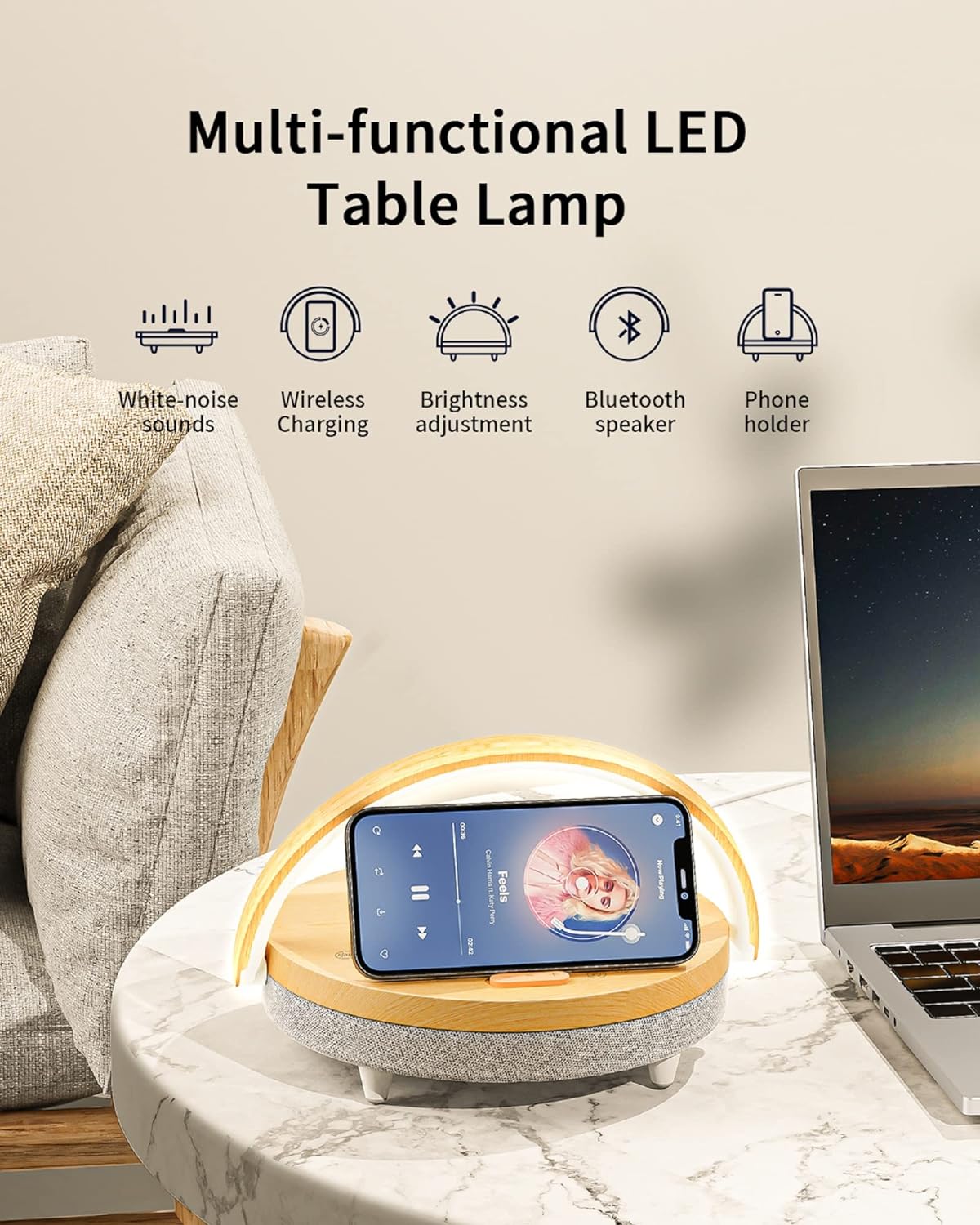 1 White Noises 2 Wireless Charger 3 Touch Lamp 4 Bluetooeh Speaker