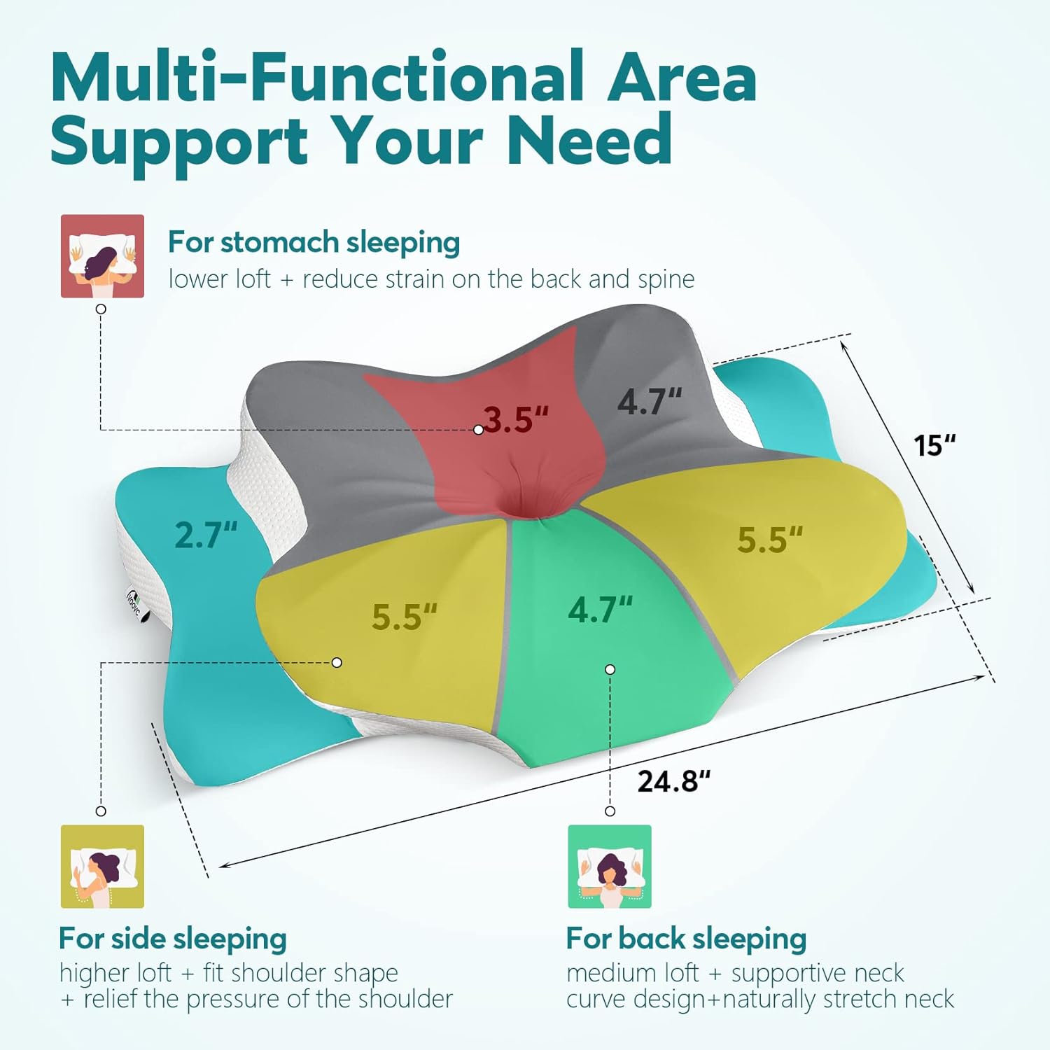 Our pillow comes with an innovative ergonomic design that naturally and perfectly fits the curve of the spine, providing proper support for spine alignment.
