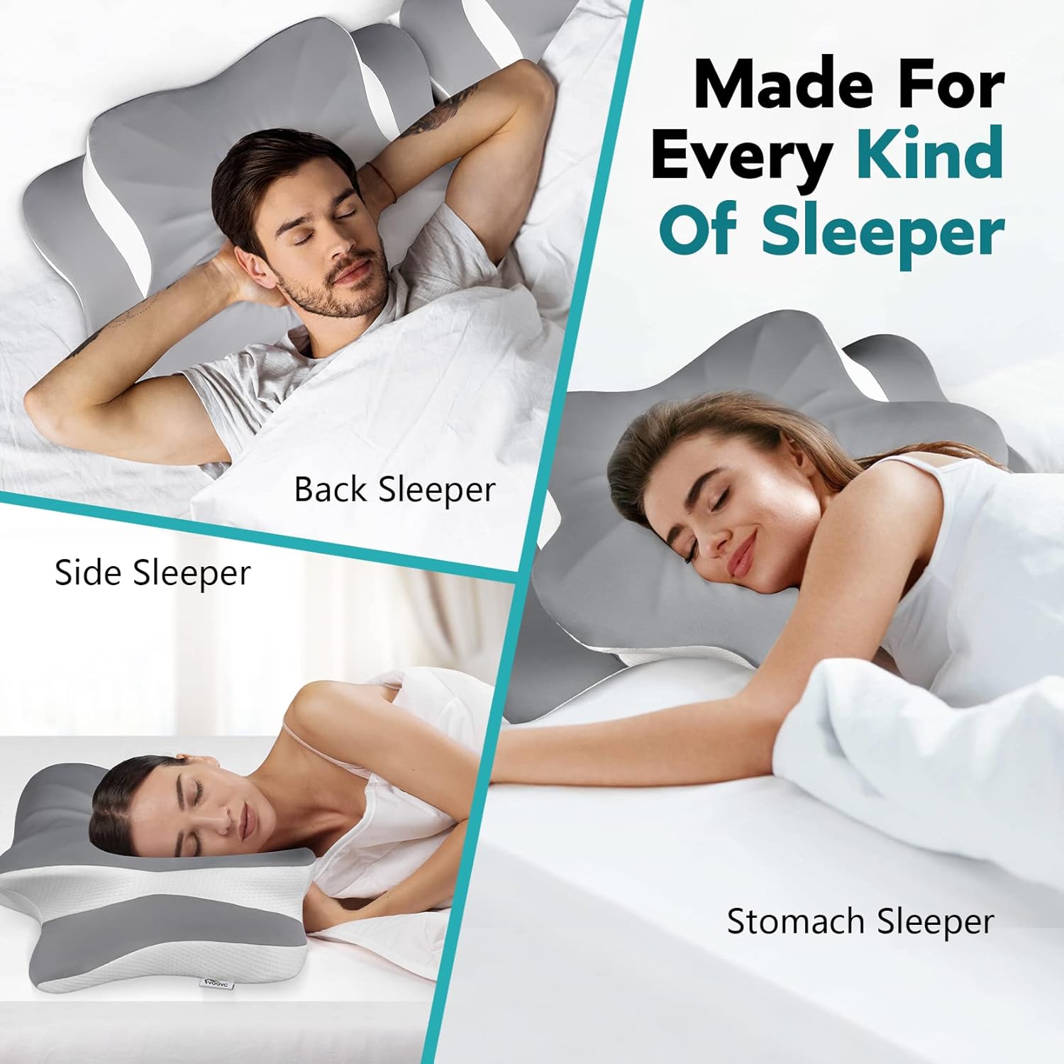 Reduces Tension and Pain – Head, neck, and shoulder alignment ensures your body adopts a natural sleep position to reduce tension or pain. The Voovc neck pillows for pain relief sleeping with a high-low design that can cradle the head and keeps it in line with your shoulders, comfortably conforming to the neck and head, providing just the right amount of lift. It can be great for side sleepers or folks who struggle with neck or shoulder pain.