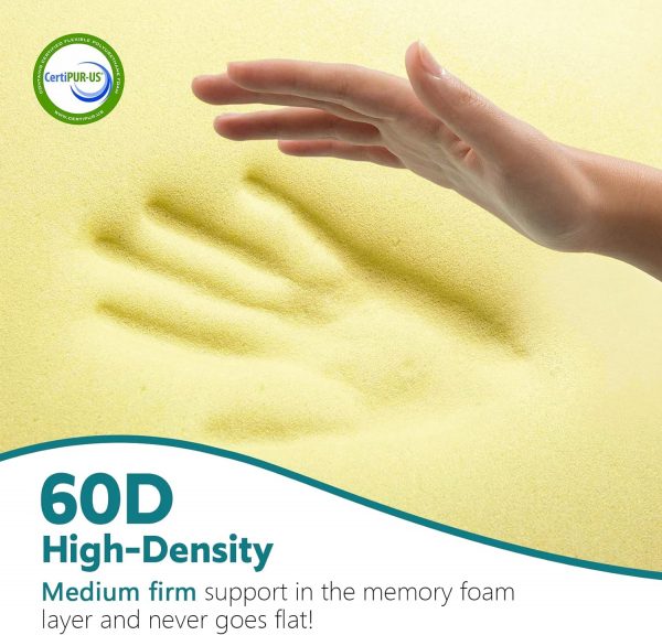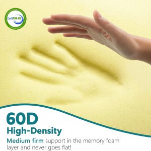 High-Density Memory Foam – It’s a medium-firm side sleeper pillow stuffed with 60D memory foam. Memory foam is known for its slow response to pressure and contouring hug. So it easily conforms to your neck and head, promoting spinal alignment. This goes a long way toward preventing or addressing neck pain. Plus, the materials here have been CertiPUR-US certified, which is safe and healthy.