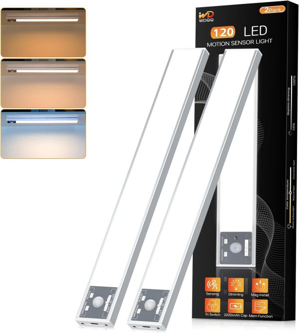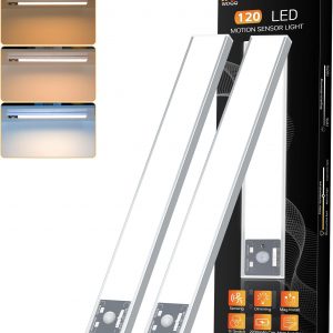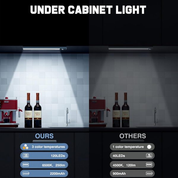 💡[High Configuration] Our under cabinet lights have a configuration far superior to other products: 120 energy-saving LED light beads, brightness up to 350lm; 2200mAh high-capacity rechargeable batteries, providing longer battery life; silver aluminum alloy shell, sturdy and durable; glare-free and uniform lighting design, bright and eye-friendly.