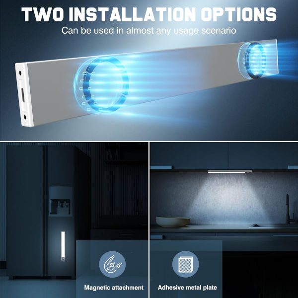 💡[Easy Installation, Wide Application] These wireless under cabinet lights are built-in strong magnets, no wiring required. They can be directly attached to iron surfaces or attached to any desired location using the included metal adhesive plate. These LED lights will be perfect for under counter lighting in kitchens, wardrobes, closets, storerooms, basements, stairs, bathrooms, and hallways.