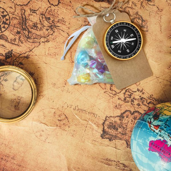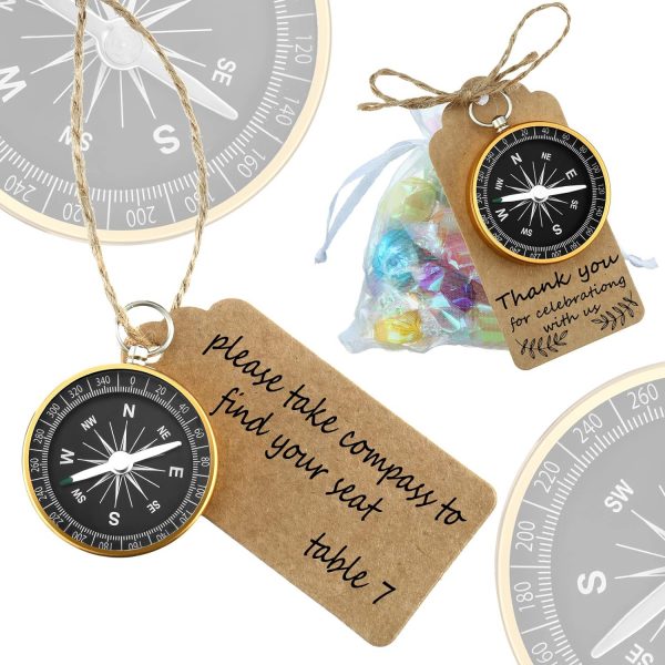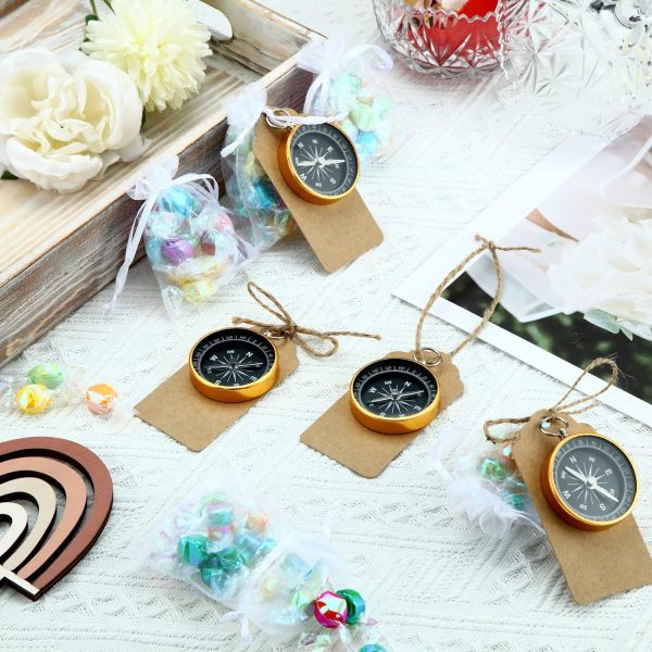 Weewooday 150 Pcs Bulk Compass Wedding Favors Set for Guests Mini Compass Souvenir Nautical Gifts with Kraft Tag and White Drawstring Organza Bag for Wedding Travel Themed Party Birthday
