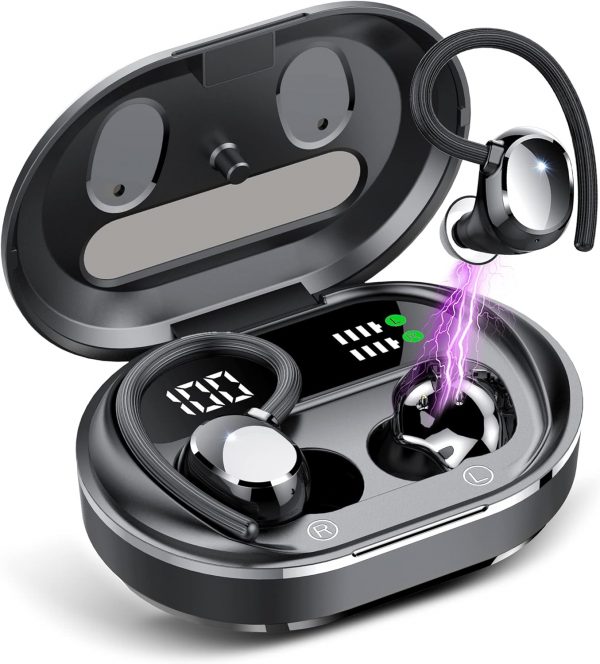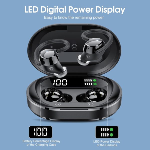 Wireless Earbuds, 2023 New Ultralight Sport Bluetooth 5.3 Headphones In Ear with LED Display, Built-in Mic Earphones, IPX7 Waterproof Wireless Headphones with Earhooks for Gym Workout (Black)