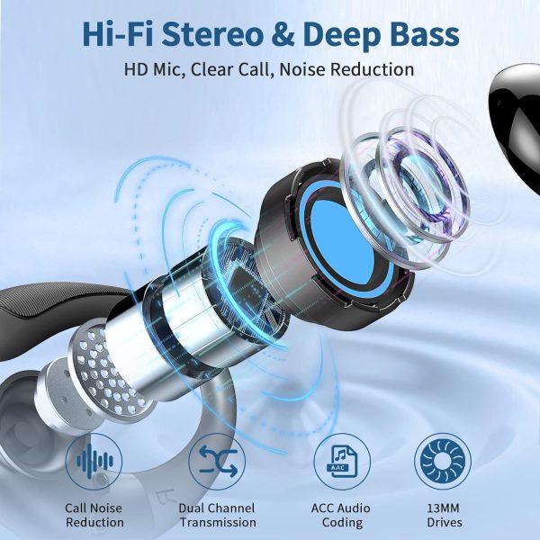 Hi-Fi Sound Quality and Crystal-clear Call: The noise canceling earbuds wireless incorporate 14.2mm double-layer diaphragm drivers, delivering sound with strong bass, clear mids, and bright treble. Benefit from Bluetooth 5.3, the wireless headphones bluetooth establishes a consistent connection to your device within a 30ft range. Besides, the built-in microphones let your voice be transmitted with clarity and precision. Experience hassle free conversations, free from ambient distractions.