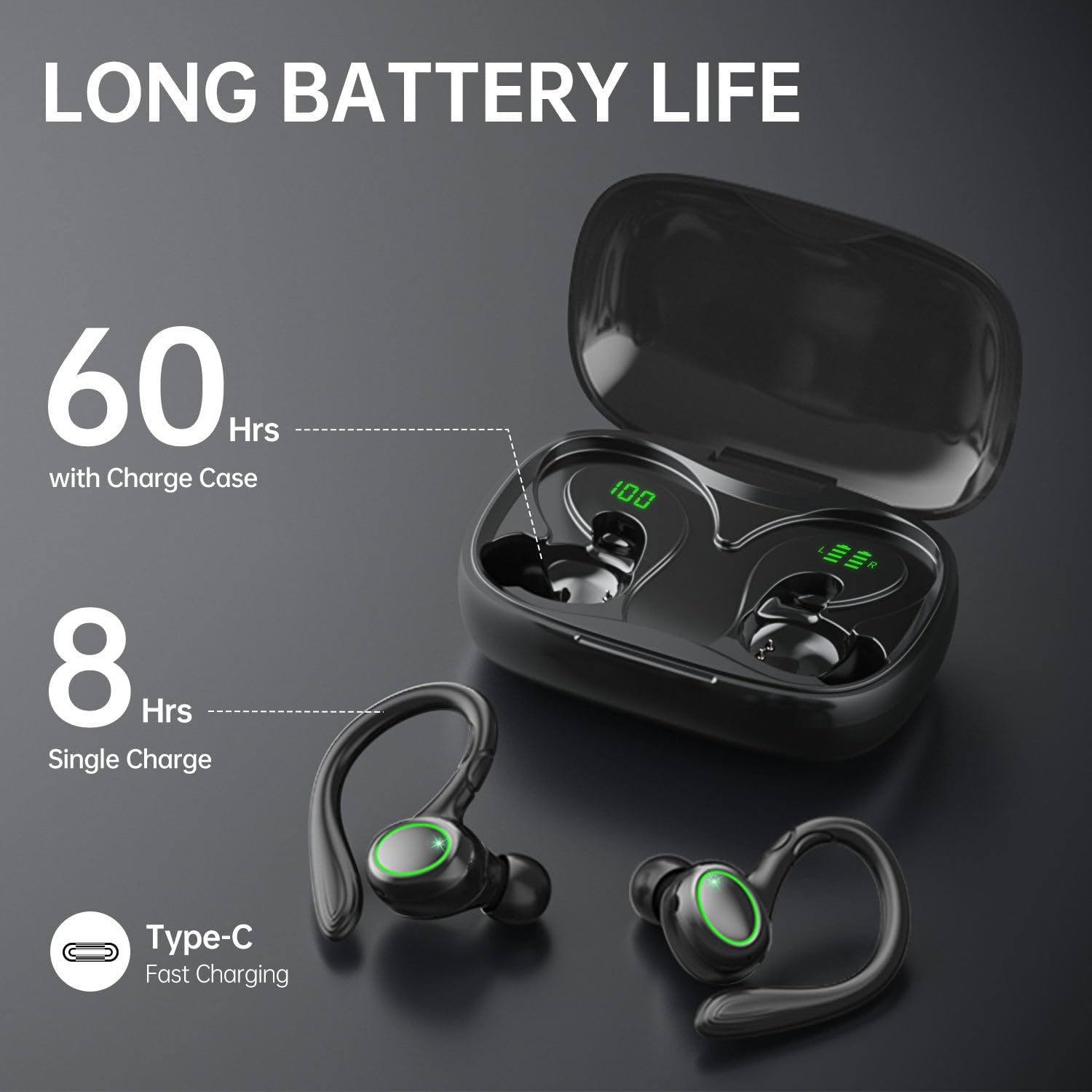 【Comfortable Design & IPX6 WaterProof】These sport wireless earphones are ergonomically designed to provide a snug fit while ensuring fatigue-free and long-lasting comfort. The flexible earhooks snugly fit your ears without falling out even for intense workouts. There are eartips in 3 sizes(S/M/L) for your choice to get the most suitable fit. The IPX7 waterproof design protects your wireless headset from sweat and splashes, which is ideal for sports, gym, workout, hiking,etc.