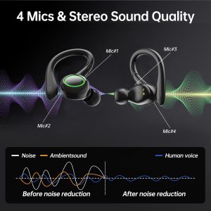 【4 Mics & Stereo Sound Quality】Each wireless earbud has built-in 2 microphones, 4 dedicated microphones can achieve precise voice pick-up and isolate external environmental noise through algorithms, make sure other people hear your voice clearly. Get clear calls anywhere you go, giving you an immersive listening experience.