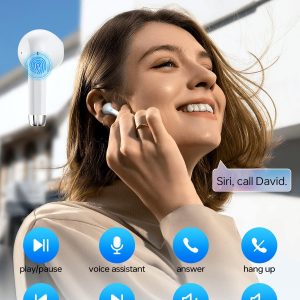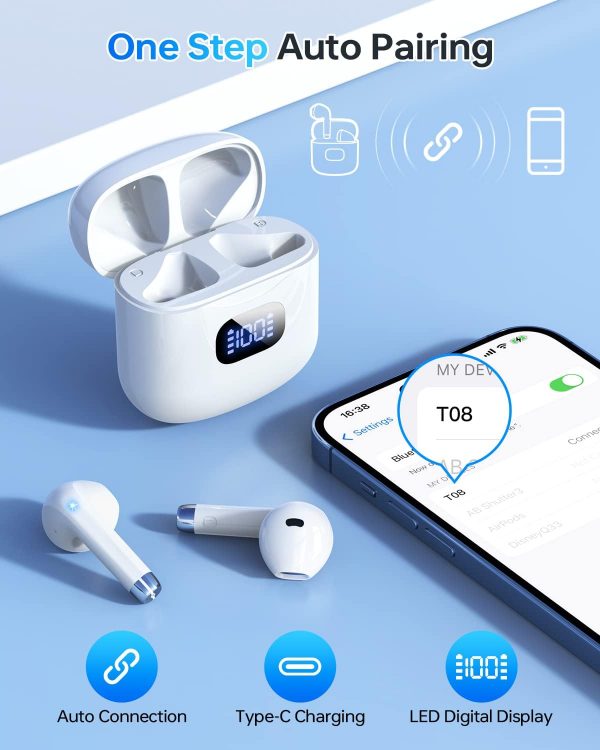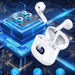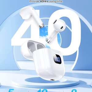 Wireless Earbuds, Bluetooth 5.3 Headphones 40Hrs Playtime with Charging Case, IPX5 Waterproof Stereo in-Ear Earphones with Microphone for iPhone Android Cell Phone Sports Workout, White