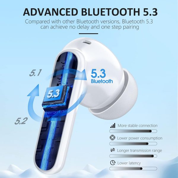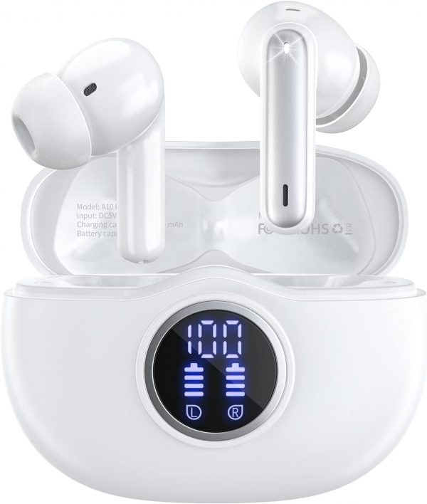 Wireless Earbuds Bluetooth 5.3 Headphones 40Hrs Playtime with LED Display for iphone and Android, Wireless earphones Deep Bass and Noise cancelling Bluetooth Ear Buds with IPX7 Waterproof, Fast Charge
