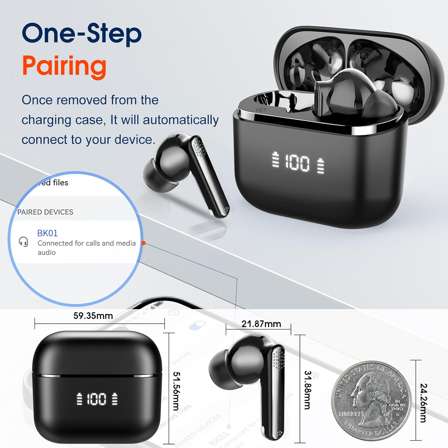 48 Hours Playtime and LED Display: These wireless ear buds offer 8 hours of battery life in a single use. With the charging box, the usage time can be increased to 48 hours, which is enough to meet most of your needs (such as daily sports, entertainment, work, travel, etc.). This Bluetooth ear buds is also equipped with a smart LED screen, which allows you to clearly see the power of the ear buds and case, avoiding the embarrassment and helplessness caused by sudden power outage.