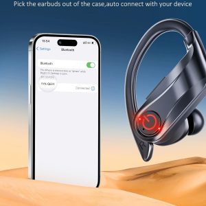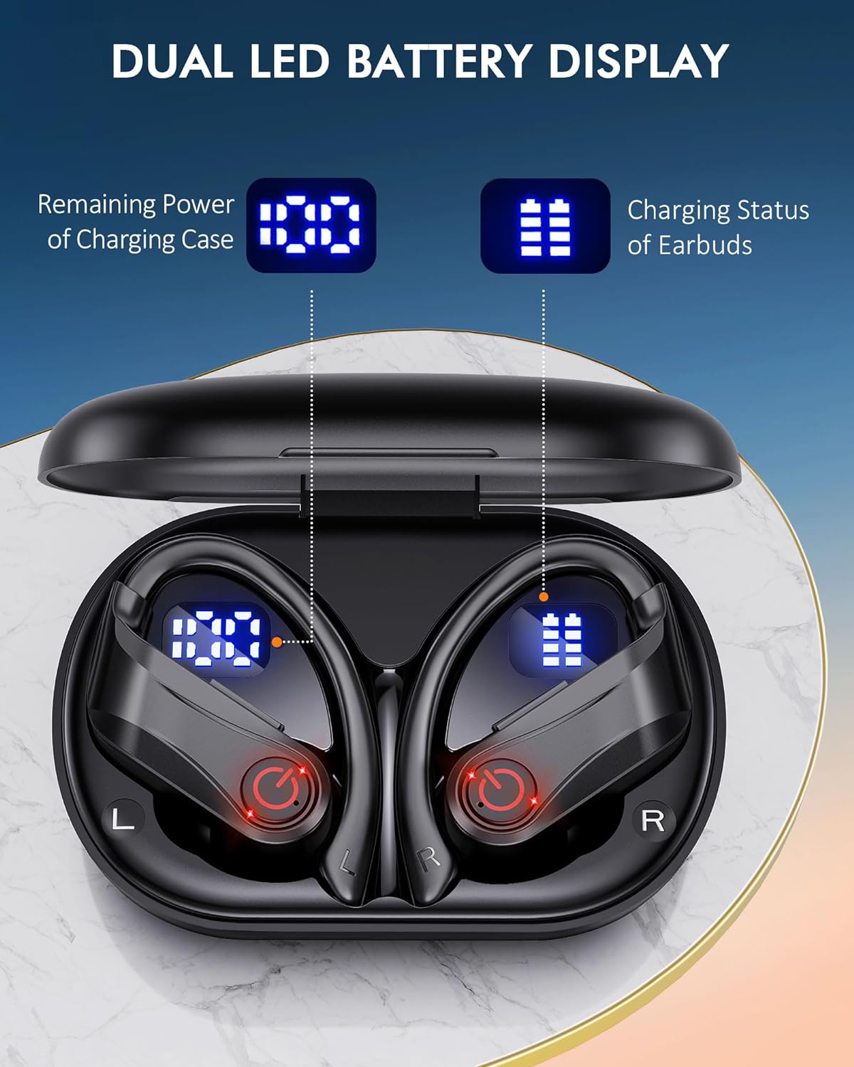 Wireless Earbuds Bluetooth 5.3 Sport Ear Buds Wireless Headphones 120H Playtime, Over-Ear Stereo Bass Ear Phone Built-in Microphone with Earhooks, IPX7 Waterproof, Dual Power Display for Sport Black