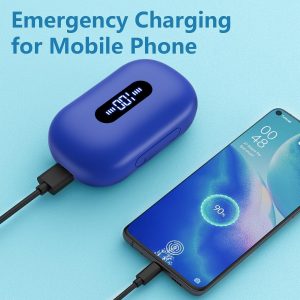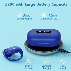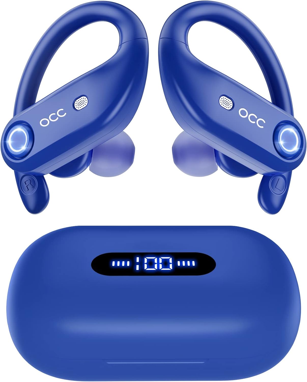 Wireless Earbuds Bluetooth Headphones 130H Playback 4-Mic HD Call IP7 Waterproof Ear Buds in Ear Sport LED Display Earphones with Earhooks for Running Workout Gym Phone Laptop TV Computer (Blue)