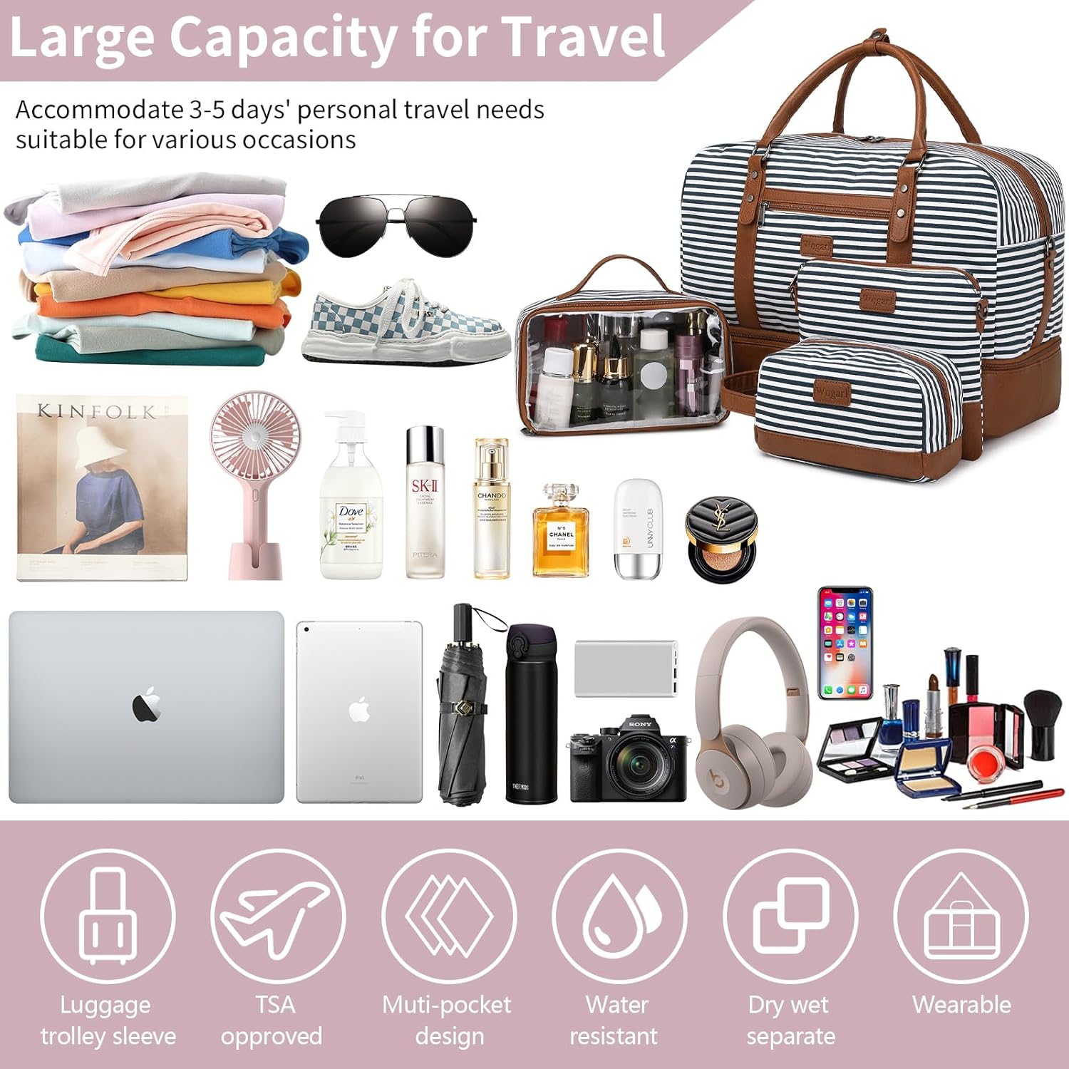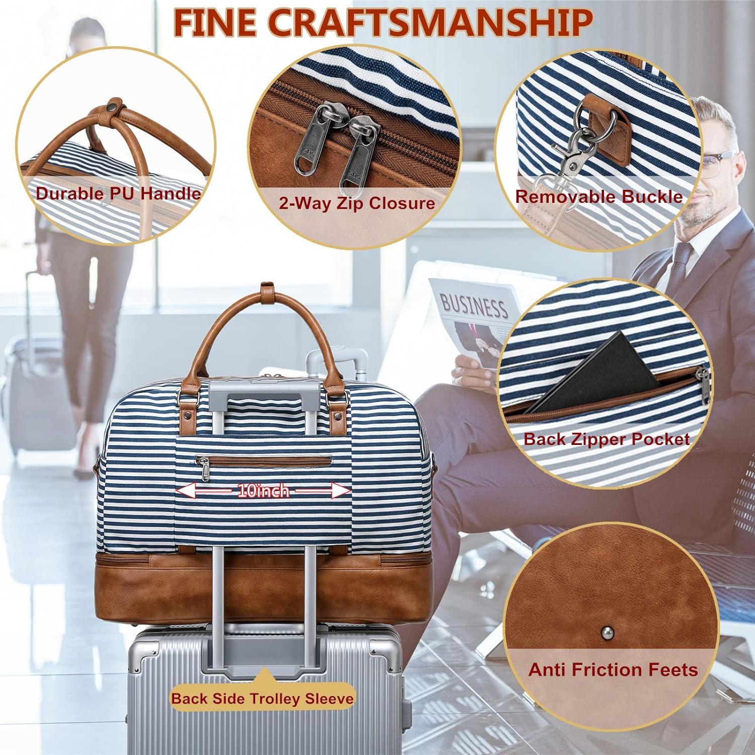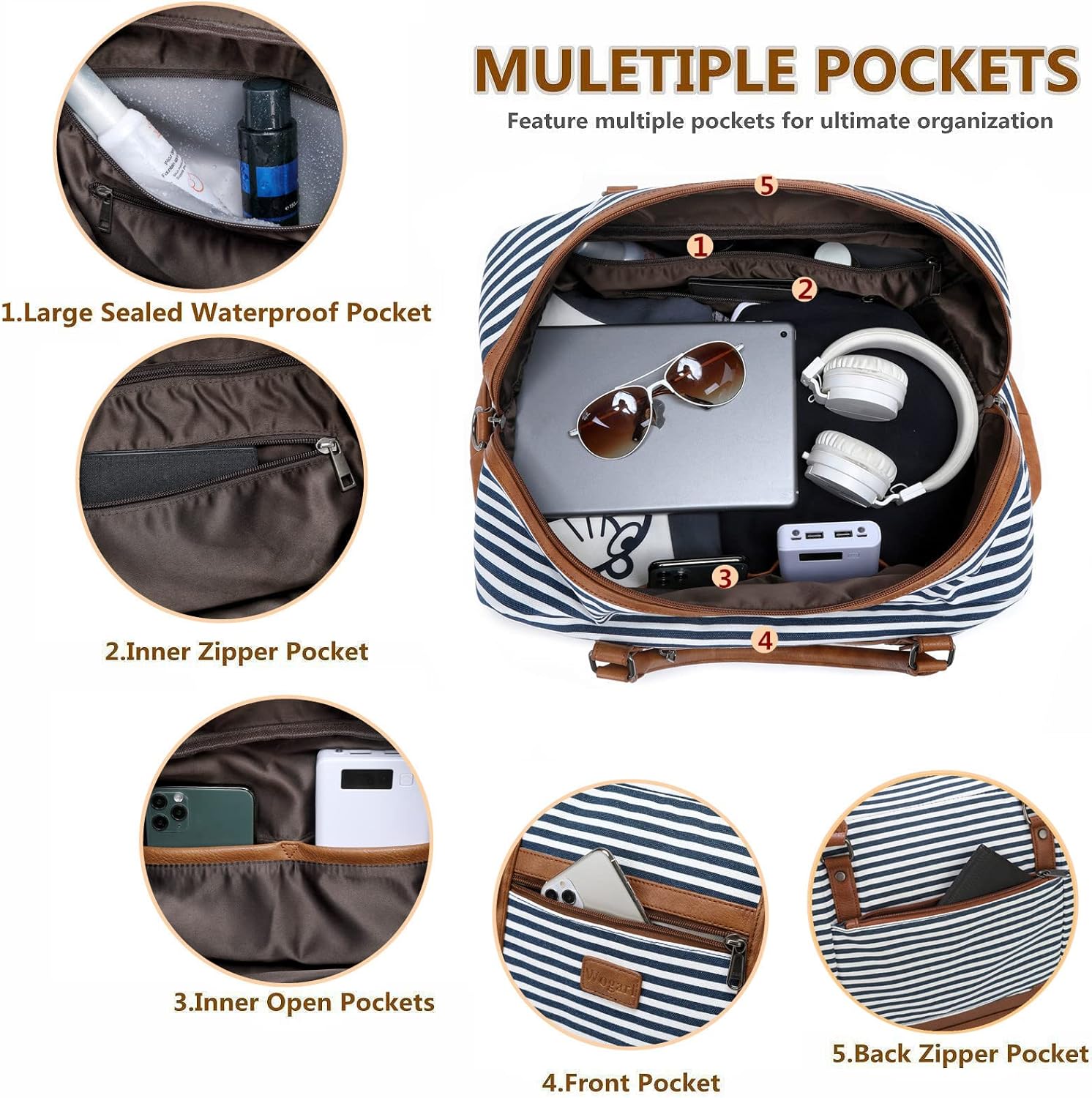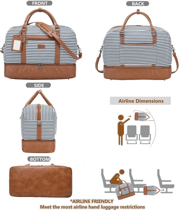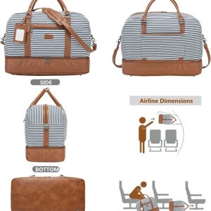 【Inner Large Sealed Waterproof Pocket Function& Multi Pockets Safety Design】The weekender bag provides versatility and comfort. with a total of 6 pockets and 1 shoe compartment, never worry about losing your important items ever again.One inner large sealed waterproof pocket, helps to keep the wet clothes, towels store separately with dry stuffs,protect your toiletries clean and tidy.