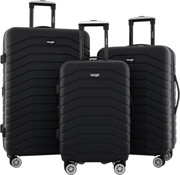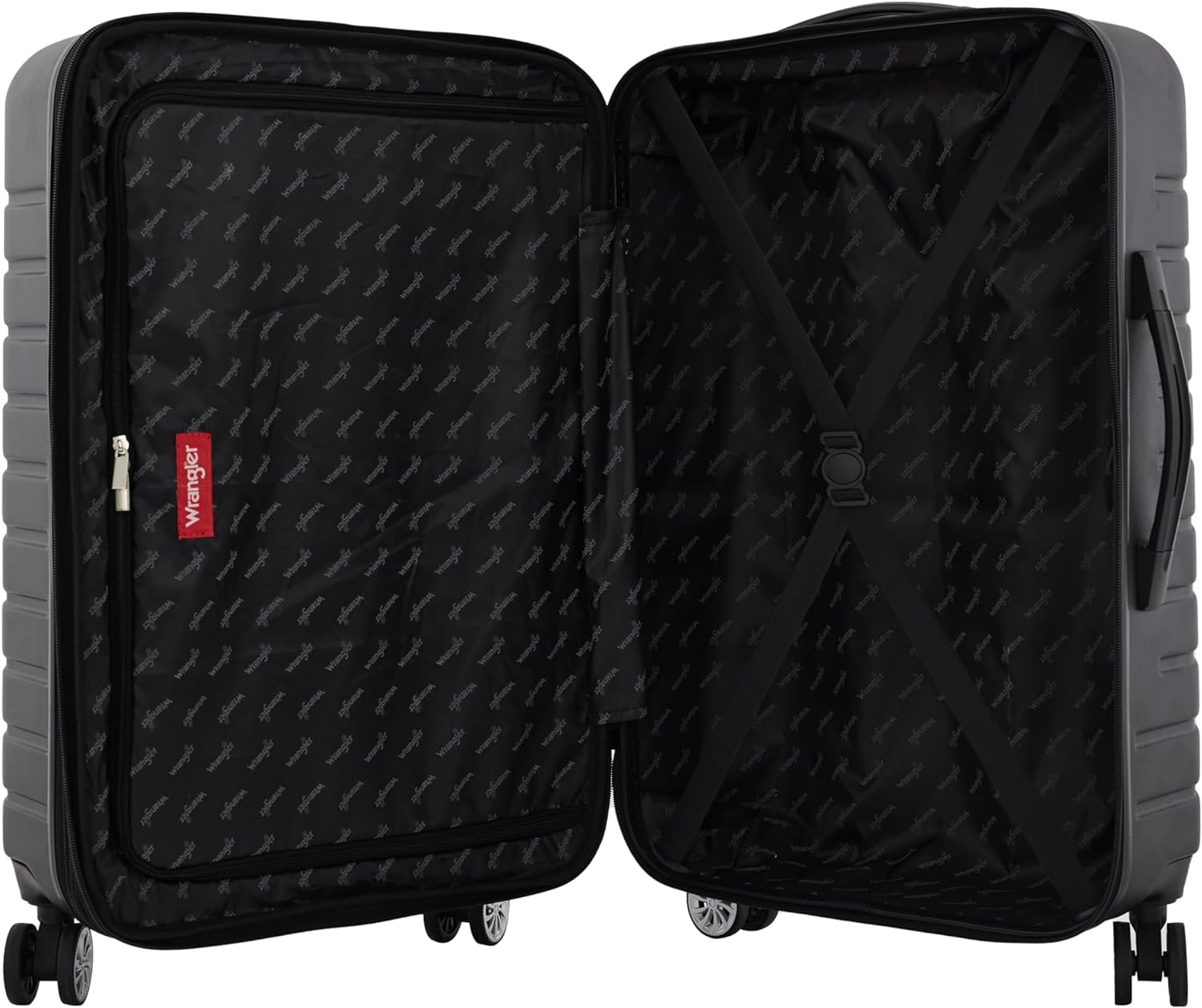 The Wrangler Tahoe 3 Piece Luggage Set offers the perfect blend of style, functionality, and convenience for travelers. This comprehensive set includes a 28″ check-in suitcase, a 24″ check-in suitcase, and a 20″ carry-on, catering to various travel needs. With an expandable design, it adapts to your packing requirements, ensuring you have ample space for your belongings. Maneuvering through airports is a breeze with the 360-degree 4-wheel system, while the top and side carry handles provide easy lifting and handling. As an official Wrangler brand product, this luggage set exemplifies quality and durability, making it an ideal choice for those seeking reliable and stylish travel companions.