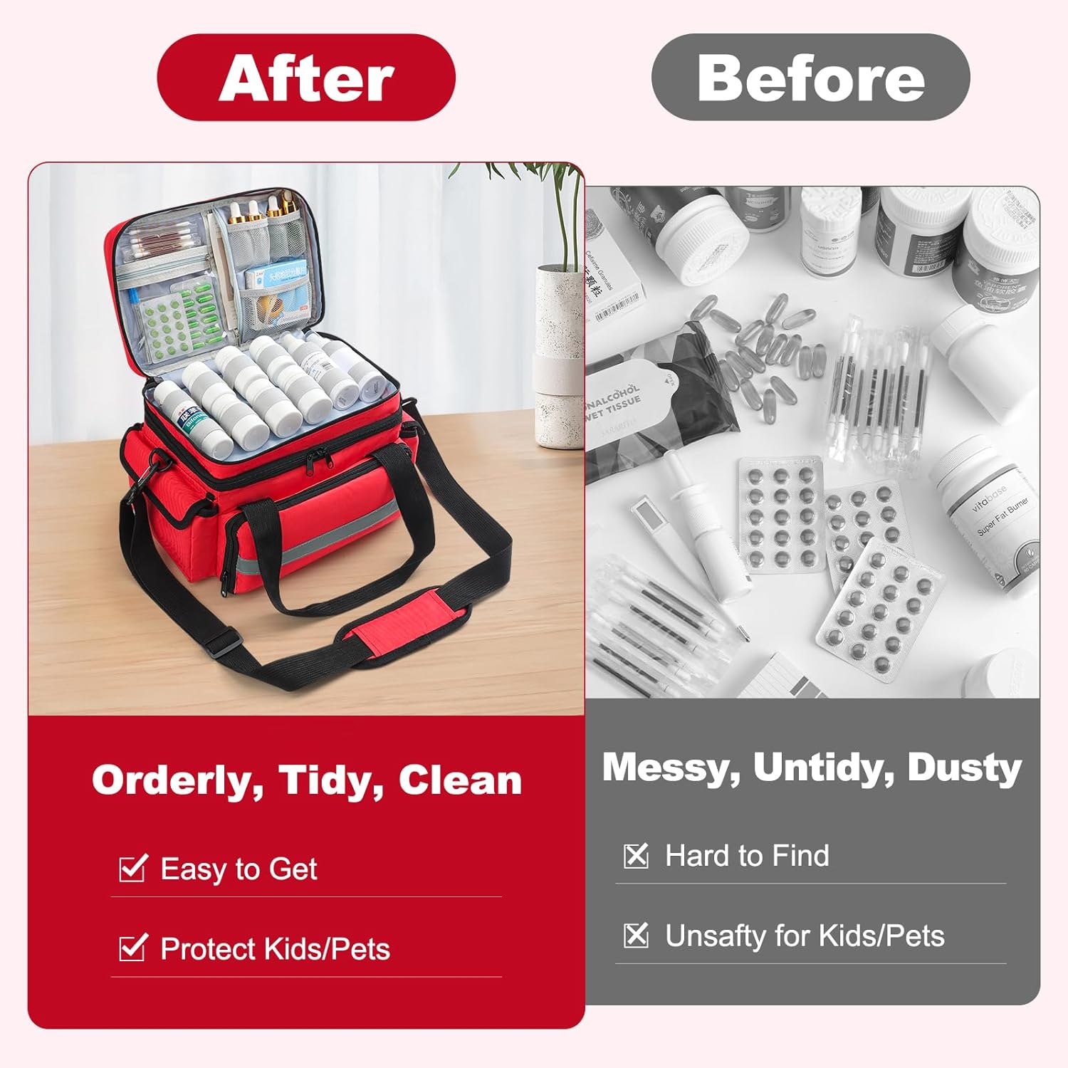 XHGWJSX Medicine Organizer with Adjustable Divider, Double-Layer Medicine Bottle organizer Storage, Portable Home Health First Aid Bag, Medicine Organizer Box for Emergency Medications (Bag Only)