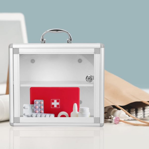 Zerodeko Medicine Box First Aid Key Safe Box with Lock Hanging Cabinet Phone Jail Tablet Container for Home Office Bathroom