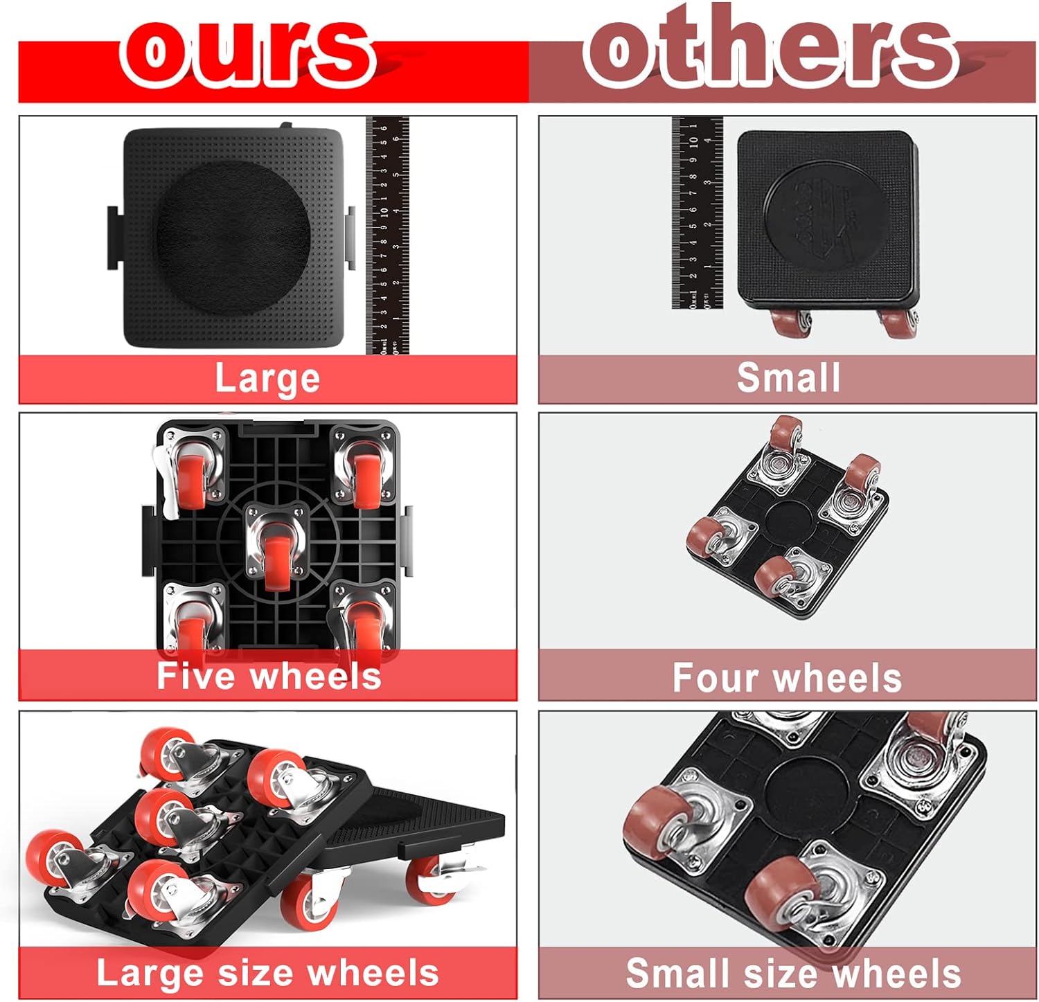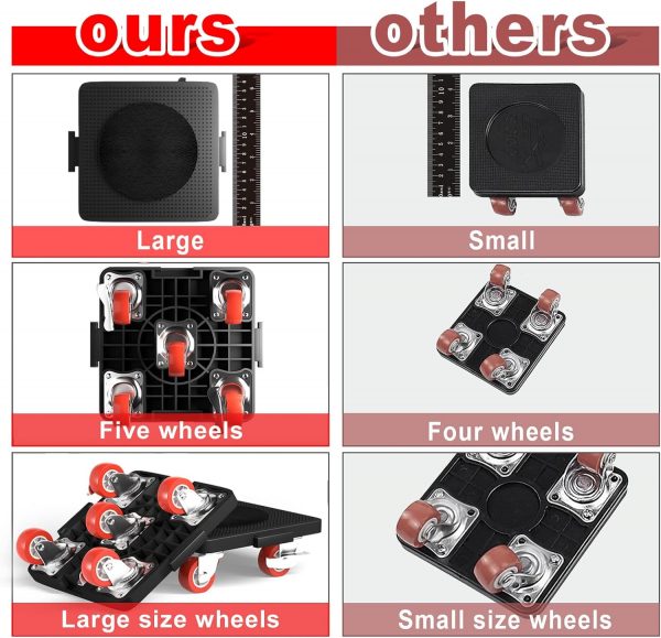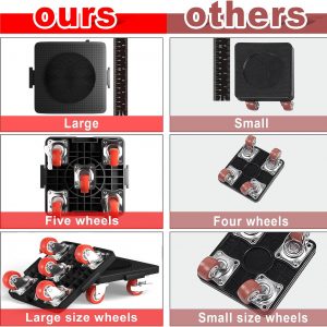 【High Quality, No Deformation】: Moving dollys made of thickened carbon steel, reinforced steel base, universal wheel with thickened rubber wheels and reinforced bearings, silent, does not hurt the floor, extended carbon steel pry bar using labor-saving, strong and non-deforming, the surface of the mover dolly’s can be pasted velvet non-slip pads to protect furniture from being scratched.