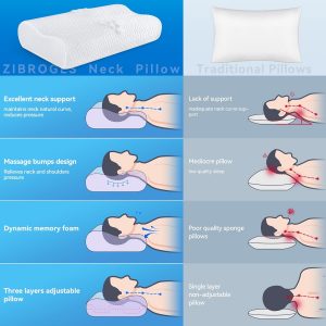 ZIBROGES, the expert in ergonomic pillows. Our focus is on relieving pain through thoughtful design and extensive research.Why choose ZIBROGES? Our ergonomic pillows provide unparalleled support and comfort, reducing aches and pains while you sleep. Invest in your well-being with ZIBROGES today.