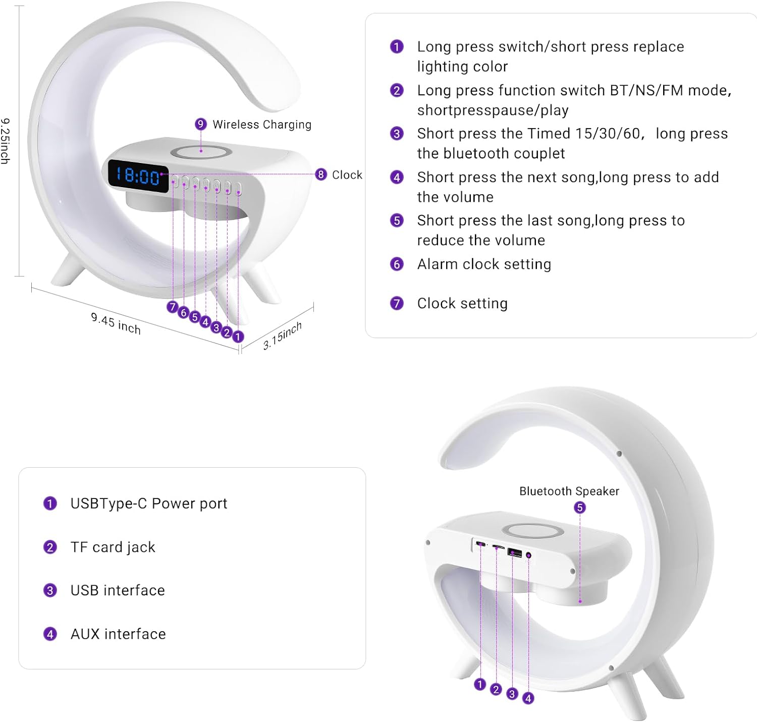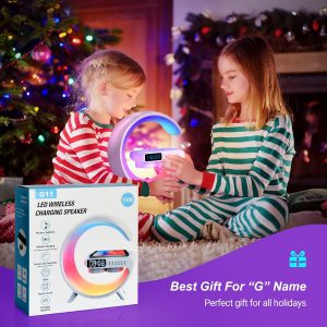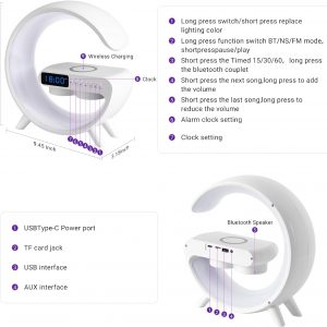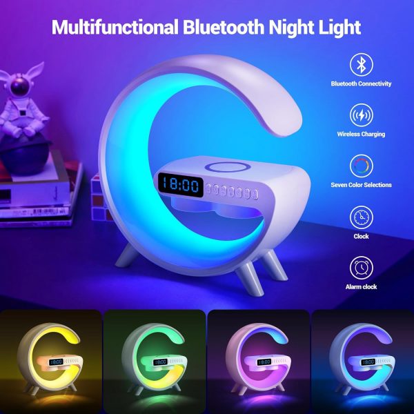 ZOOPEEN Wireless Charging Atmosphere Lamp with Bluetooth Speaker Alarm Clock Night Light 15W Wireless Charger Speaker for Bedside Lamp Desk Clock Sound Machine Ambient Lighting for Christmas Gifts