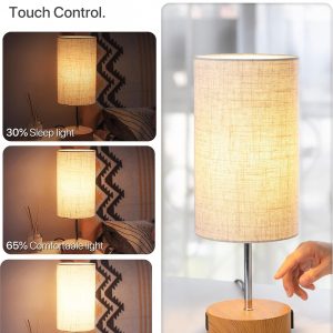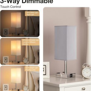 【Upgraded】 Bedside Lamp Touch Control Table Lamp with USB A+C Charging Ports & AC Outlet 3-Way Dimmable Nightstand Lamp with Linen Fabric Shade for Bedroom Living Room(E26 Light Bulb Included)