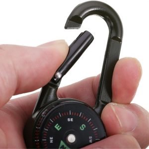1PC Compass Camping Climbing Hiking Mini Metal 3-in-1 Multifunctional Carabiner Compass Thermometer Snap Hook Keychain Compass Outdoor Climbing Survival Tools