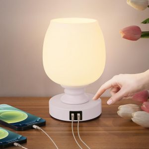 2 Pack -Small Bedside Table Lamp,3 Way Dimmable, Touch Control,USB Charger Ports,White Color, Milky White Glass Shade,Small Place Nightstand Lamp,Desk Light for Bedroom -LED Bulb Included