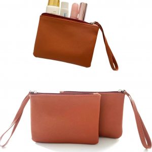 2 Pack Travel Makeup Bag Small Cosmetic Bag for Purse Organizer Pouches Stadium Approved 4.5 x 6.5 Clutch Stadium Purse Mini Car Coin Zip Pouch Western Brown Leather Wristlet for Women Gifts