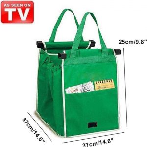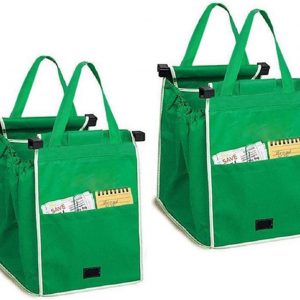 2Pack Reusable Shopping Trolley Bags Grab and Go Bag Collapsible Grocery Tote Bags with Handles, Clip on Shopping Cart As Seen On TV