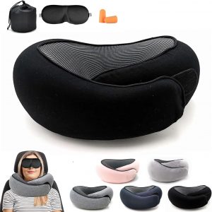 2024 Memory Foam Neck Pillow 360 Degree Neck Support Travel Pillows for Airplanes and Long Flight Travel Neck Pillow (Black)