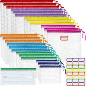 25pcs Mesh Zipper Pouch for Organization, Waterproof Zipper Pouches Colored PVC Travel Zipper Bags Clear Multipurpose Document Bags Suitable for Travel, School, Board Game and Office Supplies